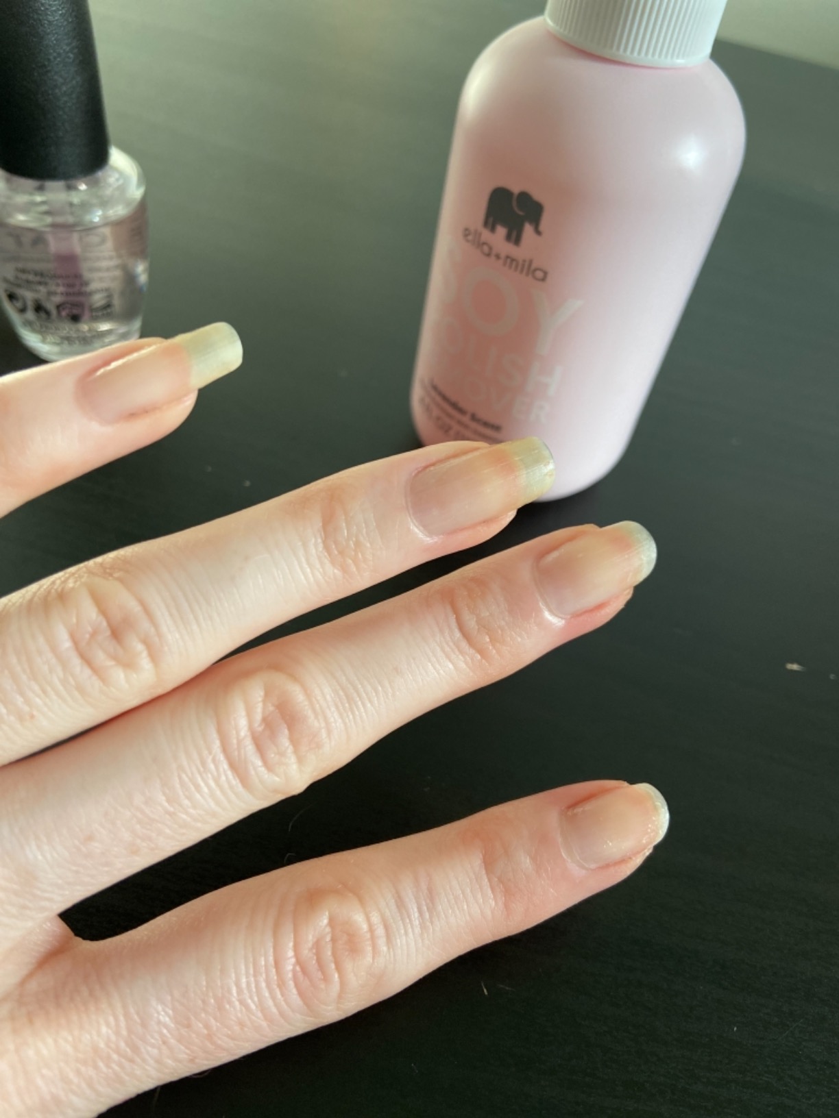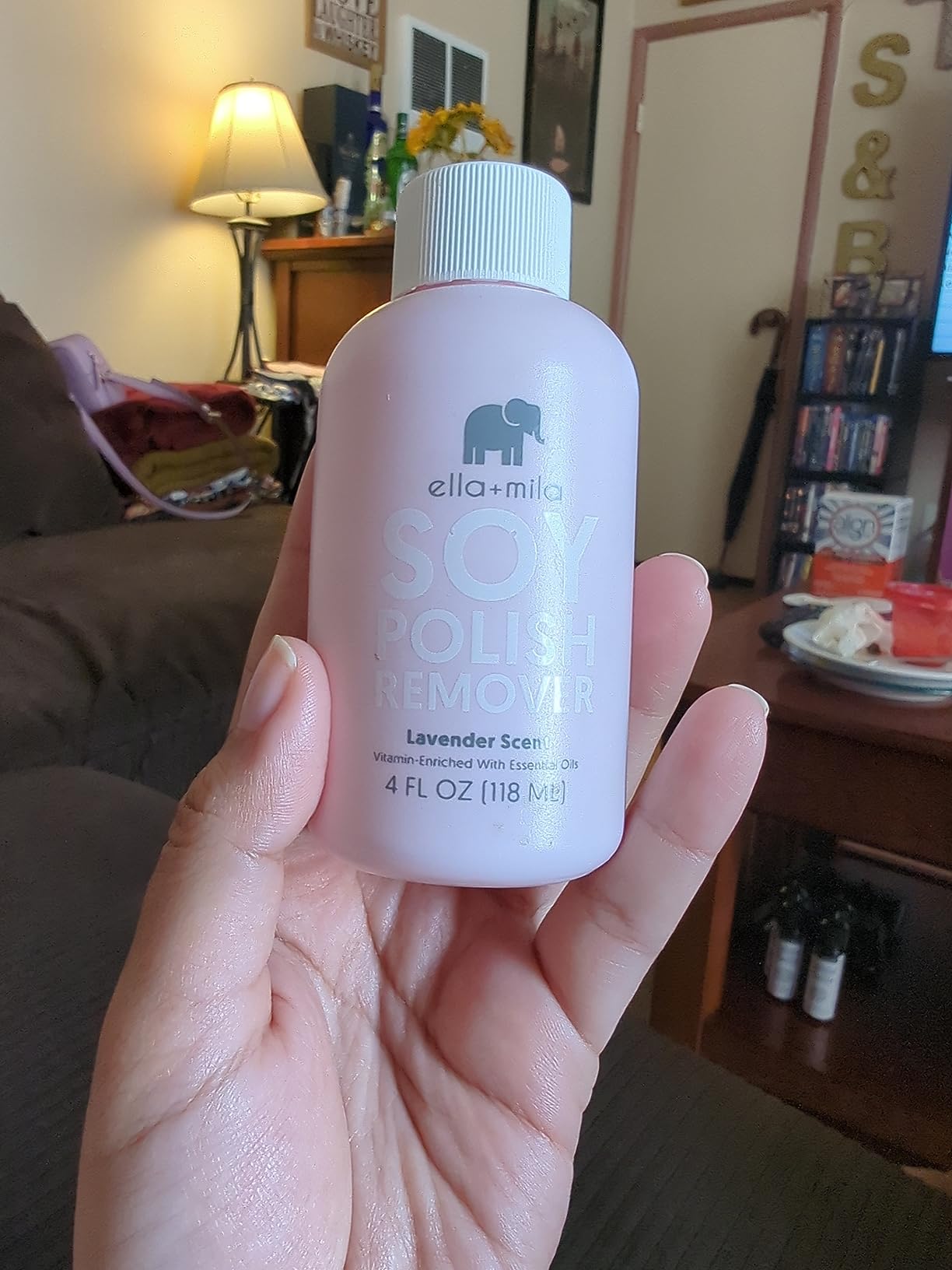 I tried the Ella + Mila soy nail polish remover and I’m honestly impressed. It’s very soft on my nails, removes the polish quickly without any effort, and has a really nice smell — not harsh like the other removers I used before. My nails feel clean and not dry at all after using it. I definitely recommend it.