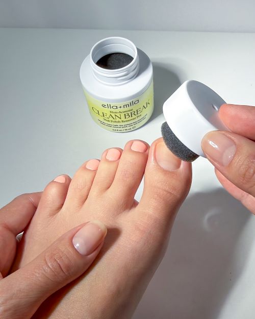 Reusable Sponge: Keep the lid closed between uses. Wash hands or feet after use and follow with your favorite ella+mila nail care.